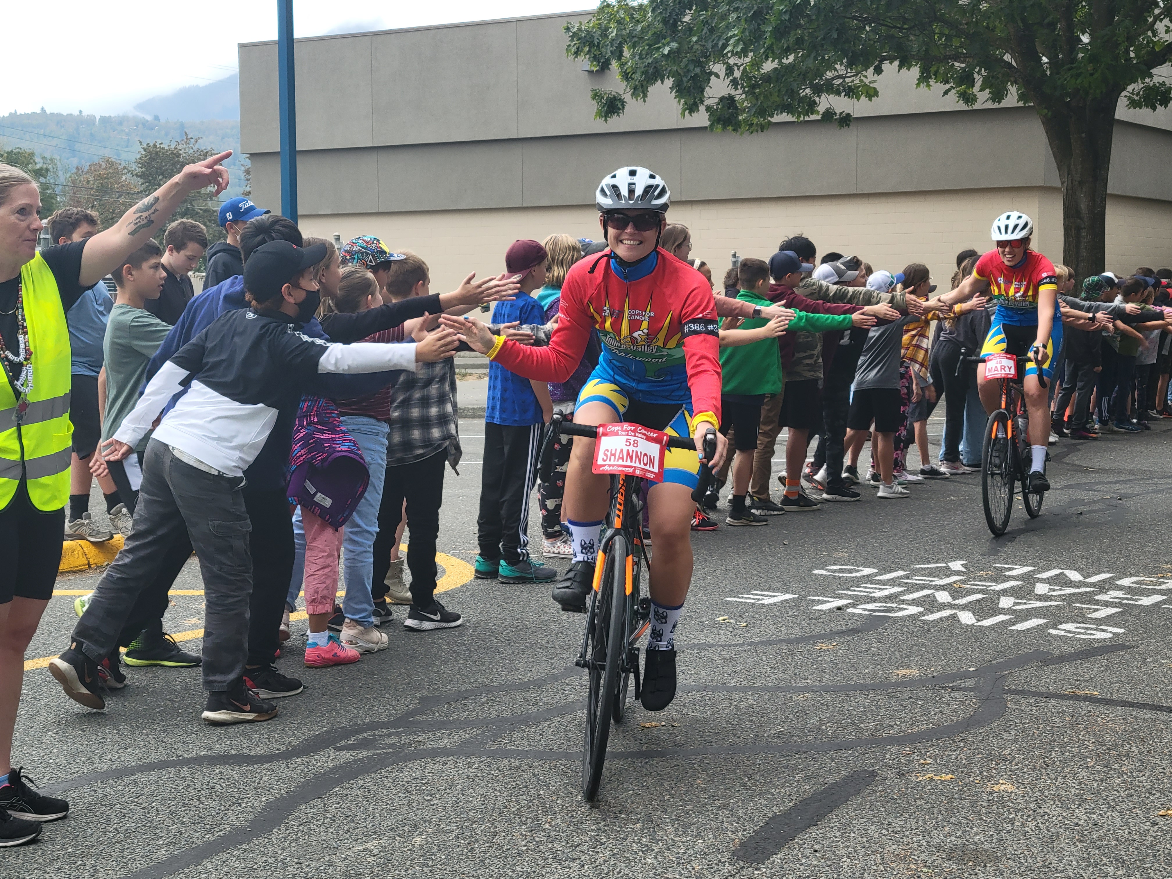 This year, the Upper Fraser Valley Regional Detachment and Agassiz RCMP are proud to support four of its own, according to Sgt. Krista Vrolyk, who is one of the four cyclists and is on her second tour. She’ll be joined by Constable Janzen, who addressed the crowd at Vedder Middle, and new to the race this year are first-time riders, Constable Nikole Anderson of Chilliwack RCMP and Constable Jenna Moore of the Agassiz RCMP.