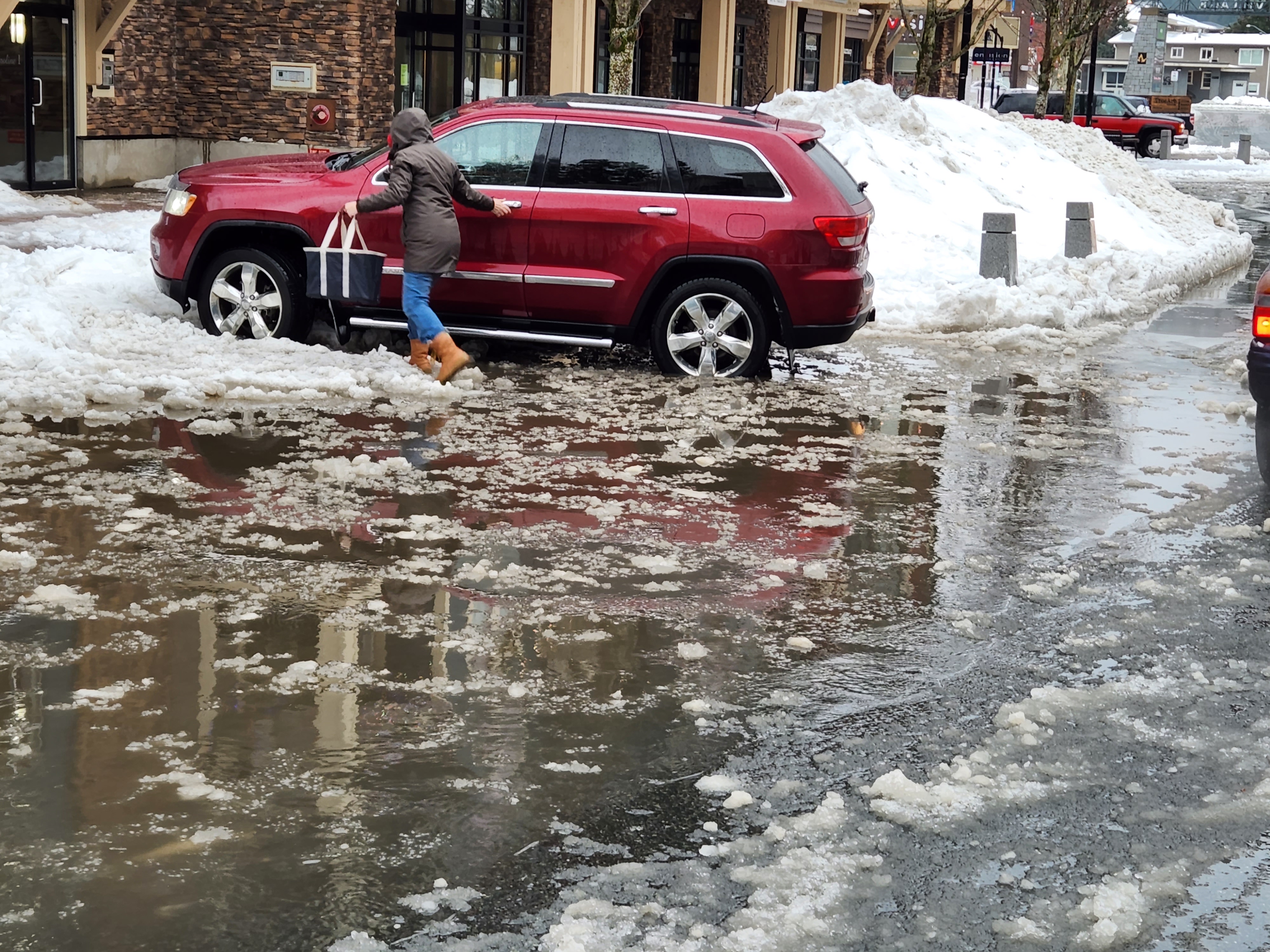 CHILLIWACK — Now that freezing rain has temporarily subsided for the most part in Chilliwack, the heavy precipitation earlier today has given way to partial flooding and water pooling on parts of Keith Wilson Road and in Garrison Crossing, and likely in other parts of Chilliwack.