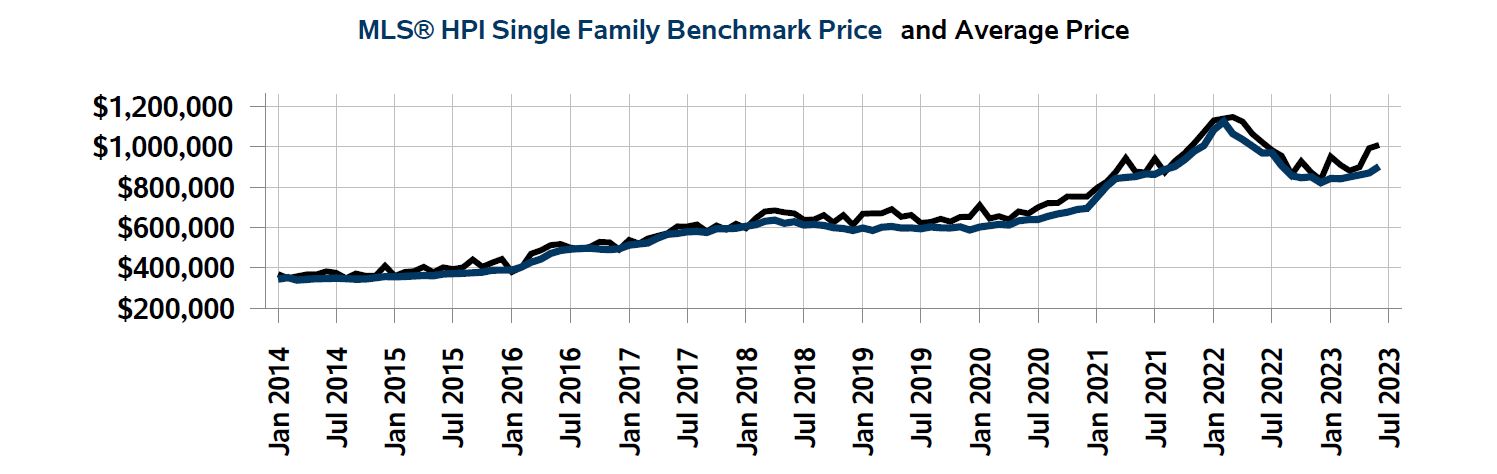 The benchmark price for single-family homes was $901,900, representing a decrease of 6.9 per cent on a year-over-year basis in June. By comparison, the benchmark price for townhouse or row units was $607,700, a decrease of 9.3 per cent when compared to a year earlier. The benchmark apartment price was $415,400, a drop of 9.1 per cent from a year ago.