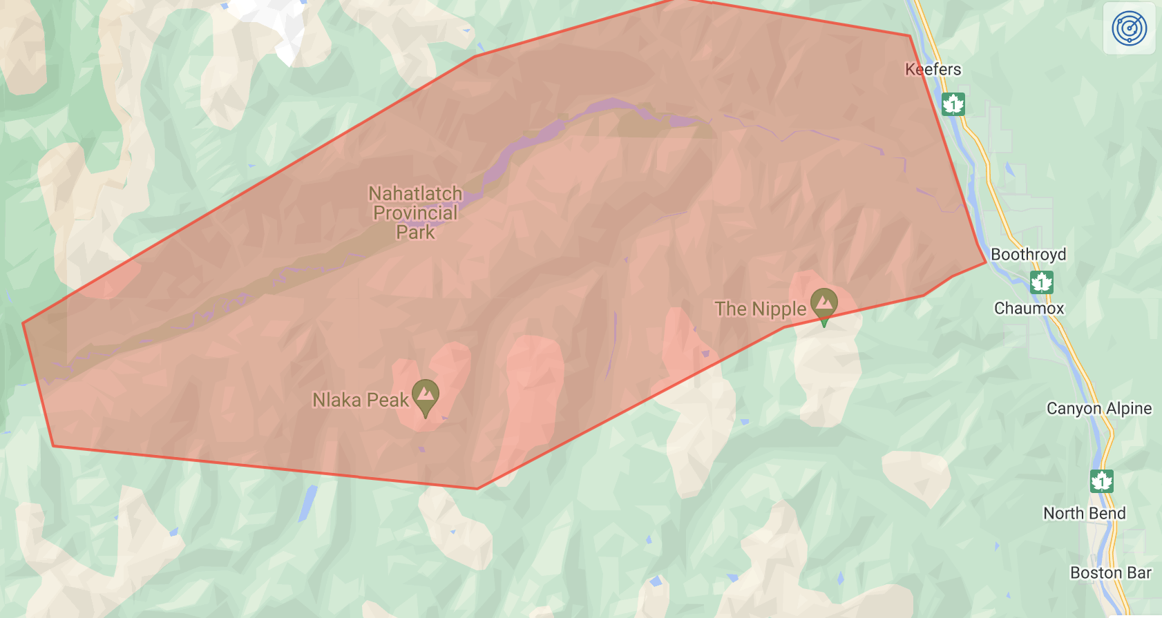 BOOTHROYD (FRASER CANYON) — The Fraser Valley Regional District issued an evacuation order Thursday night, August 17 for the area of Kookapi Creek along both north and south sides of the Nahatlatch River, west of the Fraser Canyon communities of Keefers and Boothroyd.