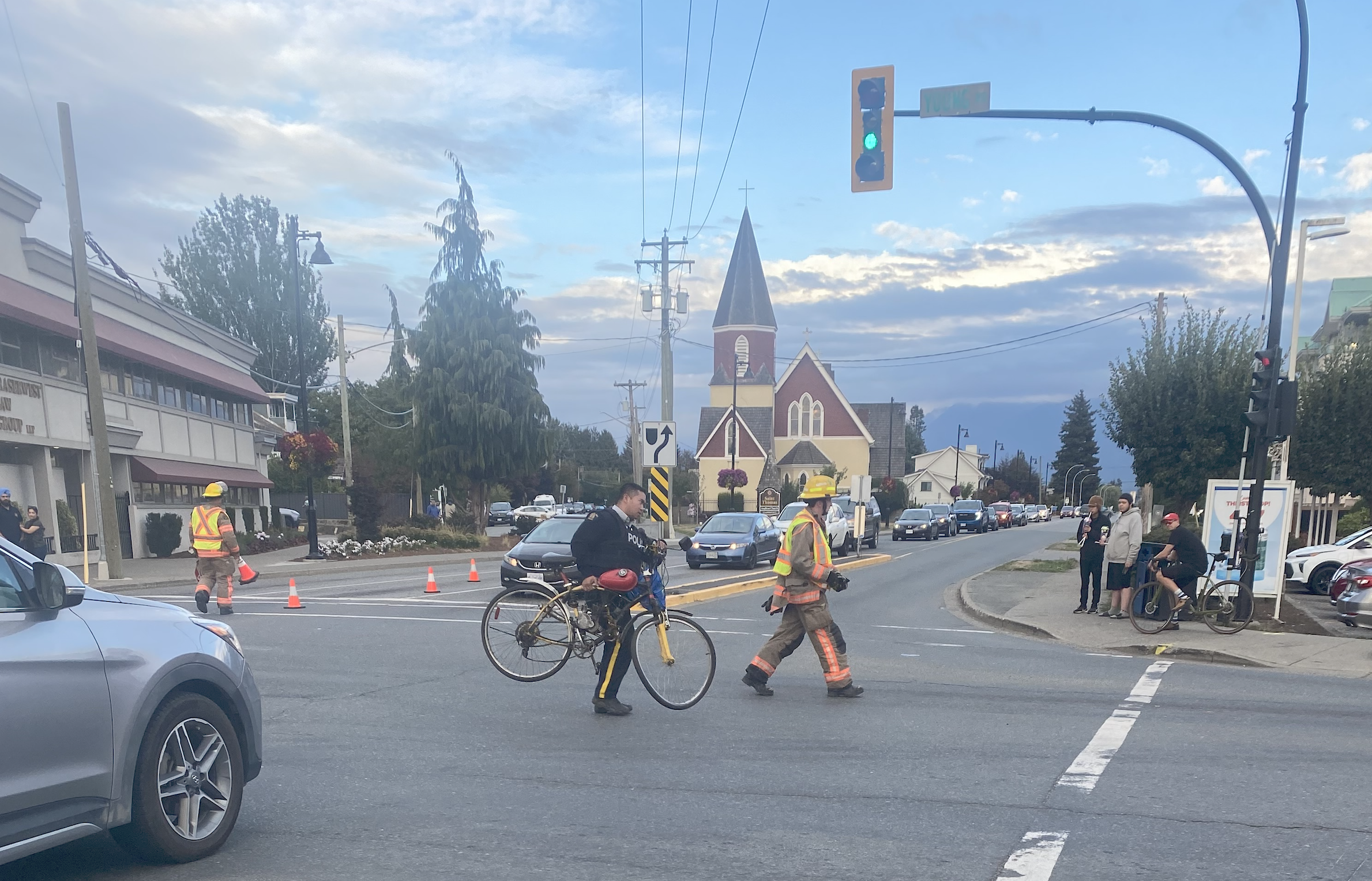 CHILLIWACK — A cyclist was injured and required paramedic assistance, including an air ambulance, after a collision Monday evening (Sept. 11) at the busy intersection of Young and First Avenue near downtown Chilliwack.