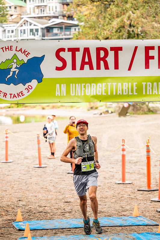 Image: Rick MacDonald Photography, via Around the Lake Give ‘R Take 30 trail race committee / Vancouver’s David Bandiera was the overall winner in Saturday’s trail race, crossing the finish line in 2 hours, 26 minutes and 40 seconds. He won the overall trail race for the second straight year.
