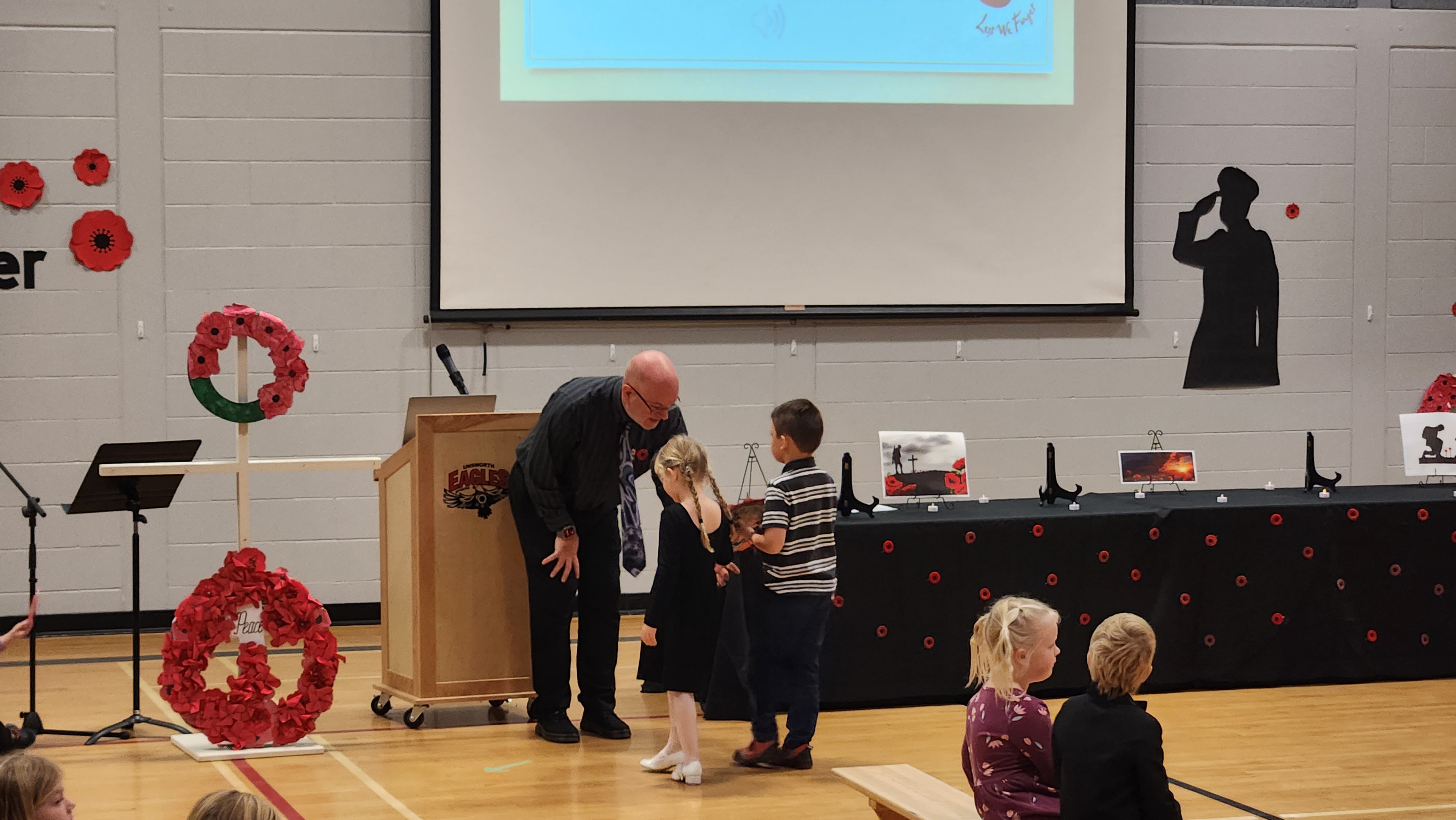 Unsworth Elementary was the site of one of many assemblies Thursday morning as principal Shawn McLeod emceed the roughly 35-minute event during which time students presented wreaths, heard what peace meant from their fellow students and watched videos paying tribute to soldiers from across Canada and their Indigenous colleagues.