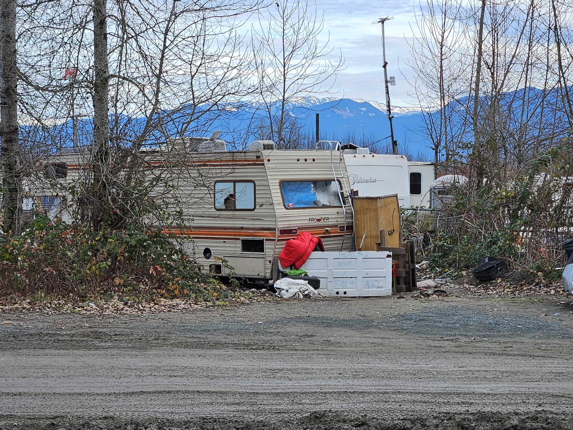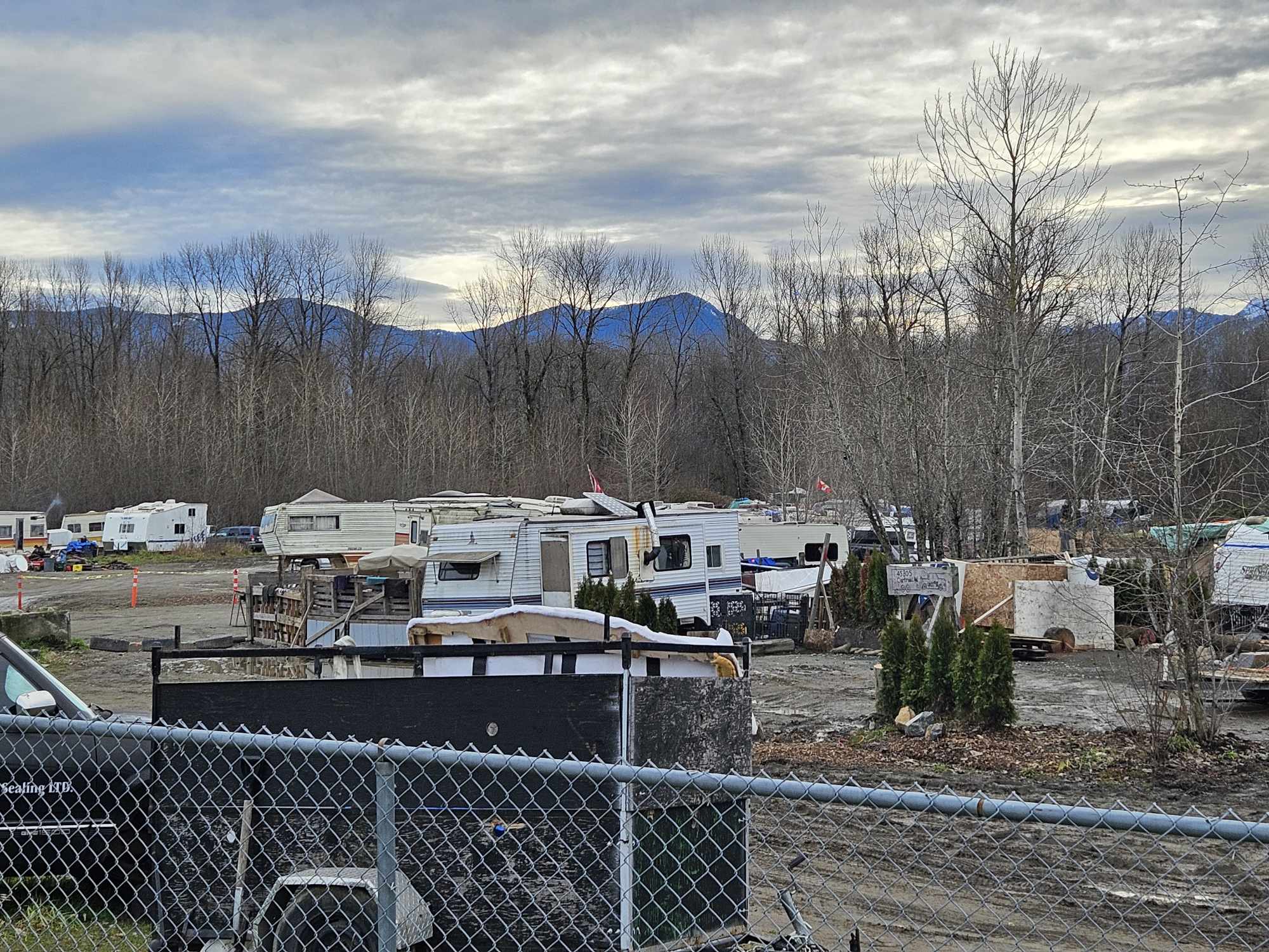 During a visit to the site Monday morning (Dec. 18), Fraser Valley Today noticed the smell of a campfire, roughly the same number of trailers, no visible tow trucks in sight, and voices outside a trailer just east of the main entrance. Residents here have roughly 44 days left until they must vacate the premises with their belongings.