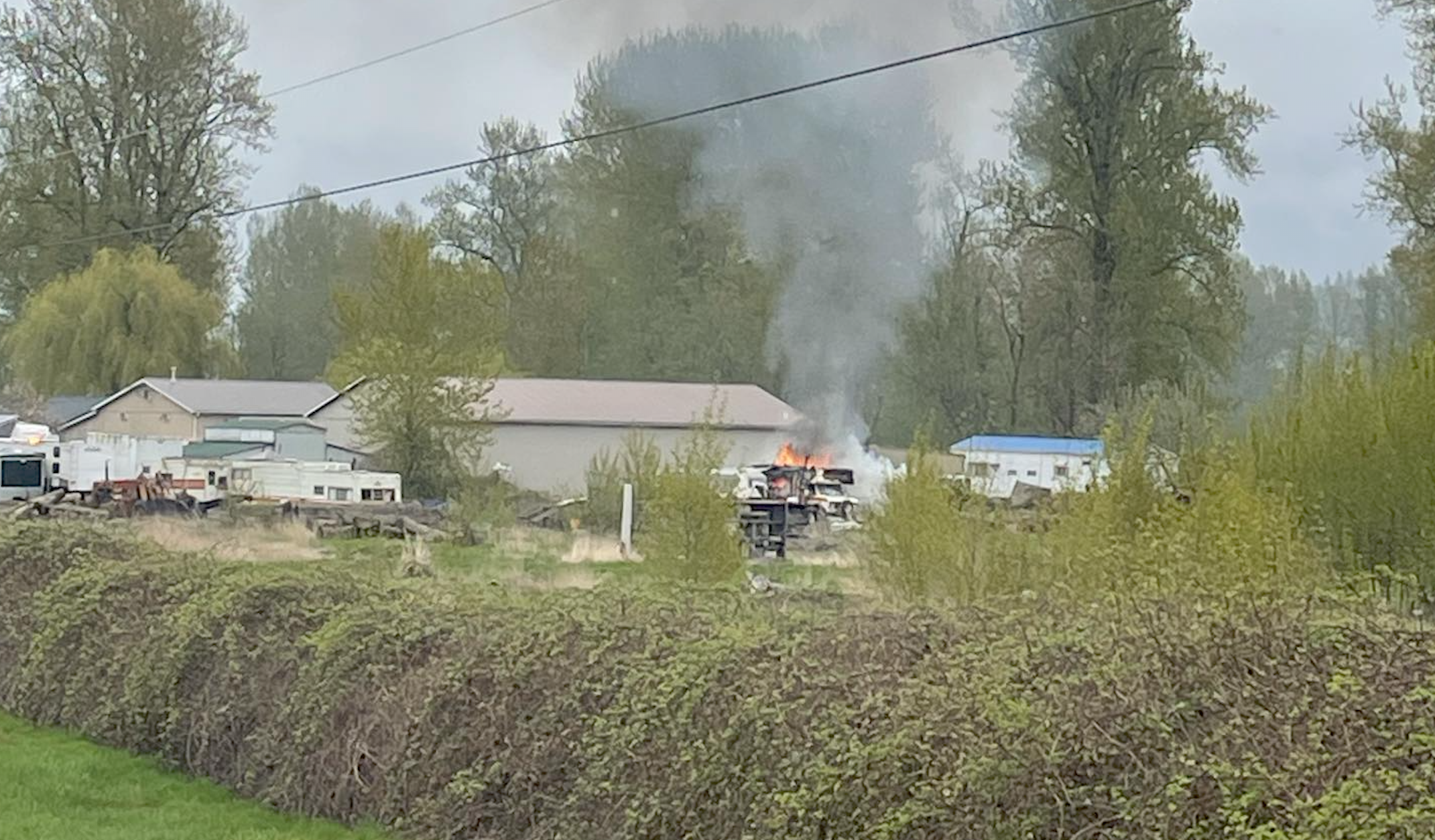 According to scanner traffic and images shared by Chilliwack resident Julie Hiscock, Chilliwack firefighters were dispatched at approximately 11:50 a.m. for a motorhome on fire. Responding firefighters battled a fire at property on the south side of Cartmell Road, not far from Island 22, in the 45600 block of Cartmell Road.