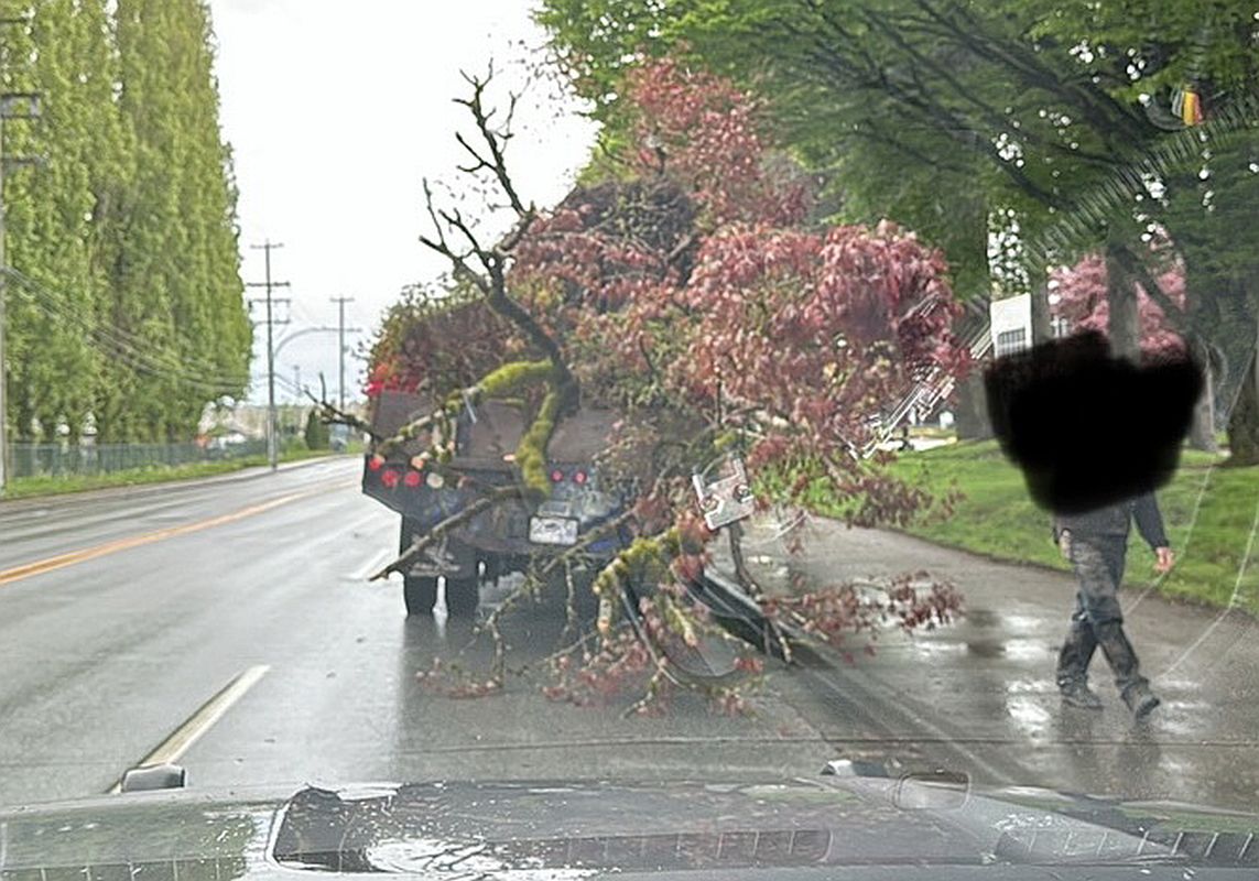 RICHMOND — The Richmond RCMP Road Safety Unit dealt with an unusual situation that involved a flat-deck truck transporting large trees along Highway 91 recently. During a routine patrol, an office spotted the vehicle and stopped it over concern of the load.