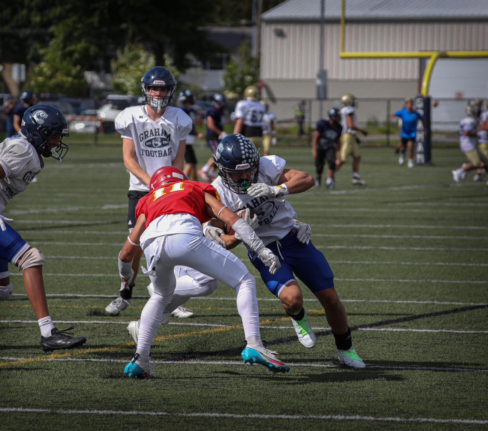 Defensive coordinator Mike Hayes said, “Overall, I was happy with the boys’ effort. Given that we have several guys playing new positions and a whole new defence for the young guys coming up, I thought we adapted well. Lots of areas to improve which we’re excited about. It was great afternoon of football!”