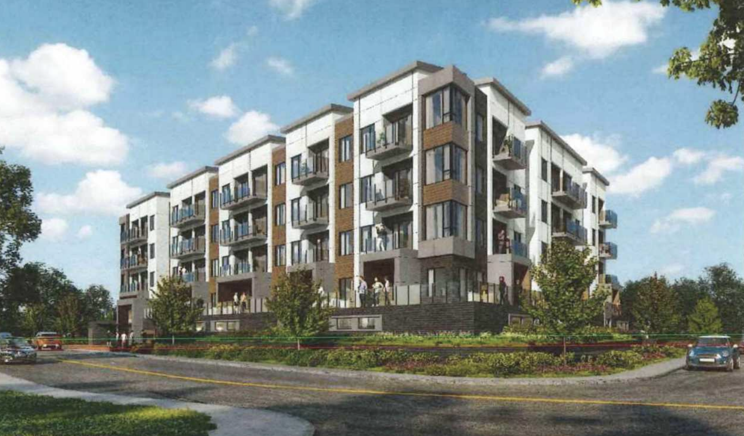 The applicant, Rajinder Warraich of Surrey-based Flat Architecture, had applied to rezone the properties from an R1-A (urban residential) zone to an R5 (low-rise apartment) zone to facilitate the construction of an apartment development at 46780 Yale Road and 9795 and 9777 Carleton Street. The proposal envisioned a five-storey building, including a one-storey above-ground parkade with four residential floors above it, 74 units with 46 units being small unit apartments, 93 off-street parking spaces including 16 visitor parking spaces (92 off-street parking spaces are required by the City of Chilliwack), 93 bicycle parking spaces and 40 trees.