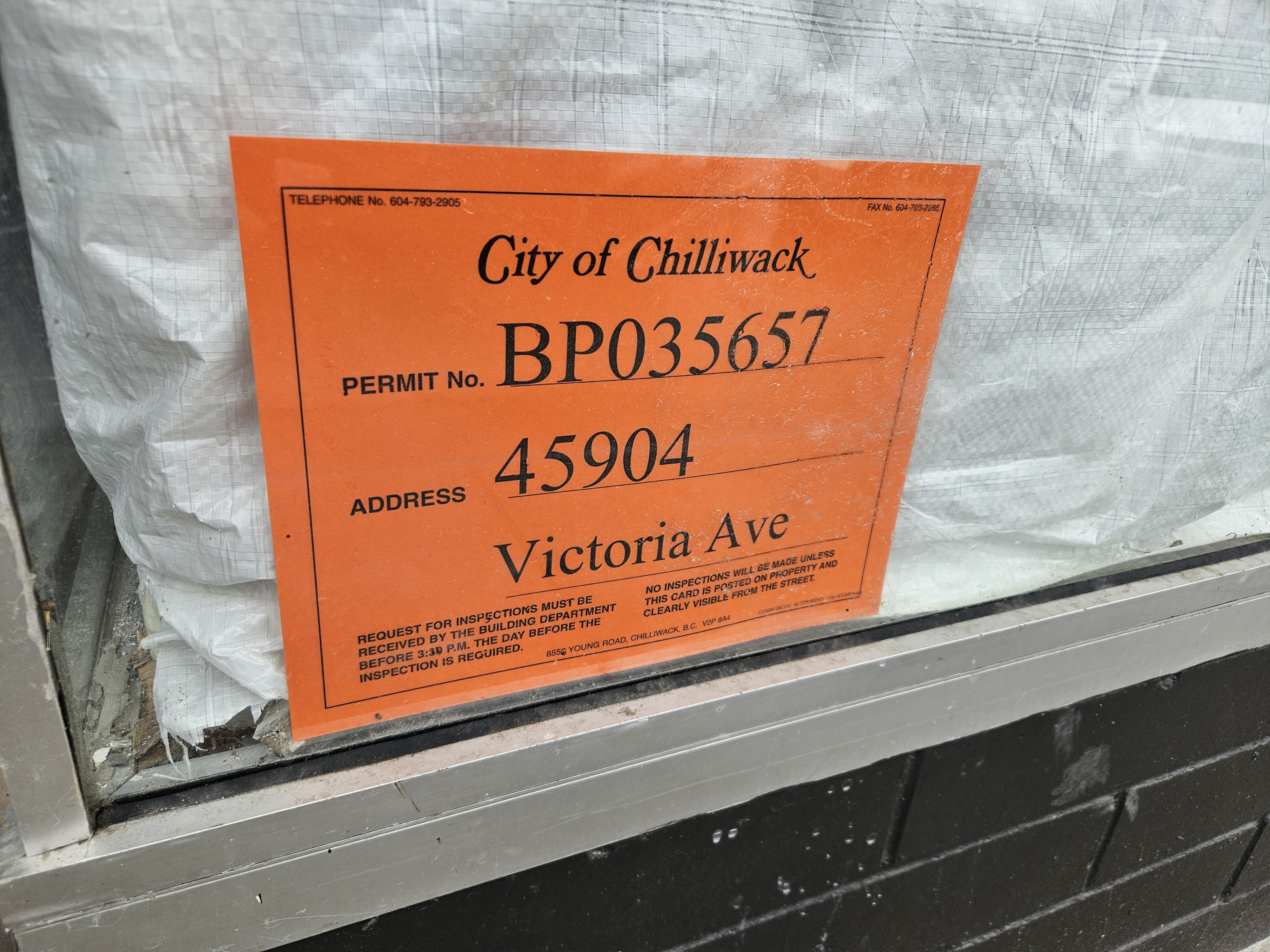 Jaimie Tocher, a communications assistant for the city, told Fraser Valley Today in an email that the city’s building department has issued a building permit for the property at 45904 Victoria Avenue.