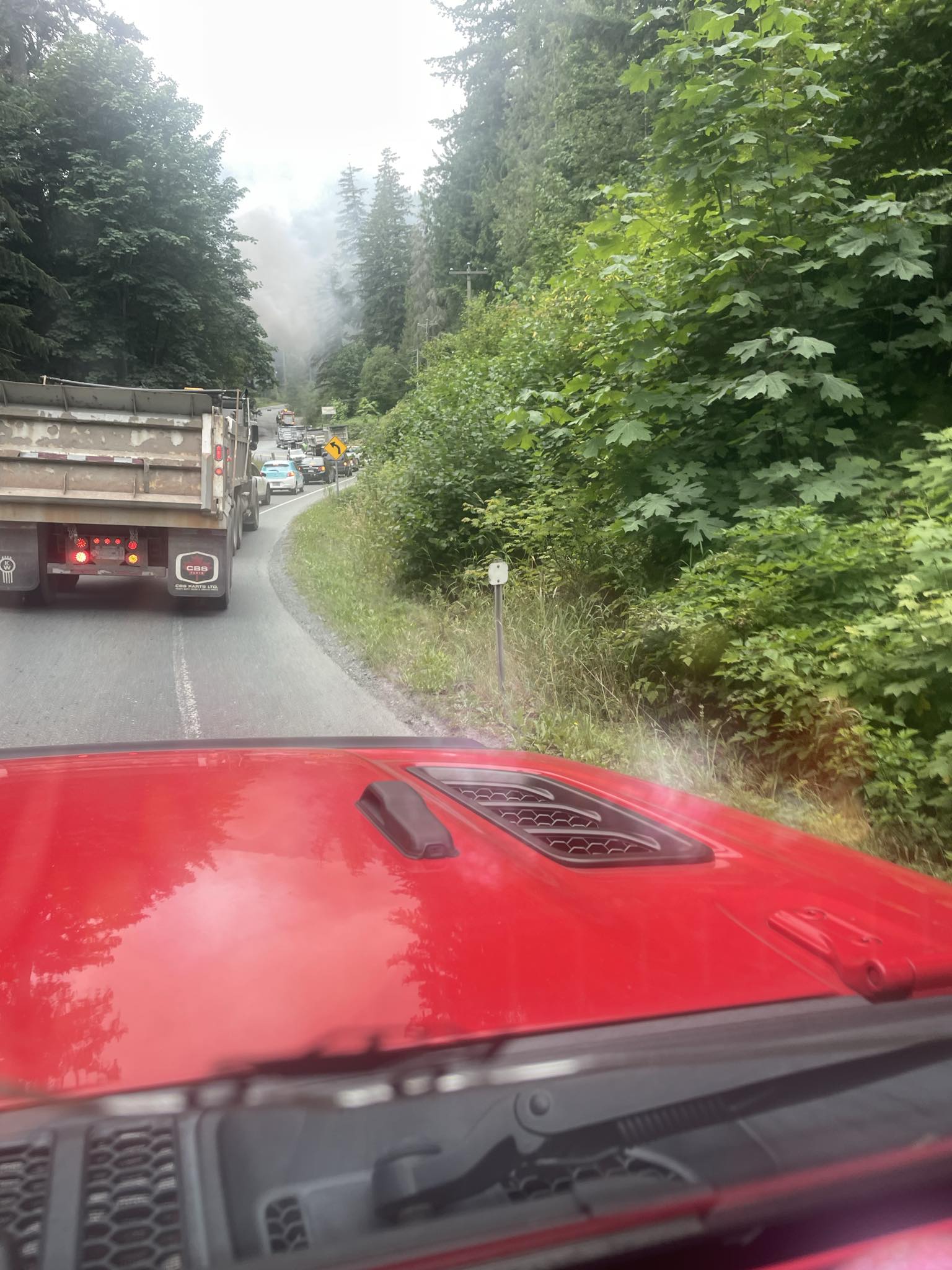 CULTUS LAKE — Crews have extinguished a burning gravel truck and trailer before it could spread to a forested area in Cultus Lake this morning (July 18).