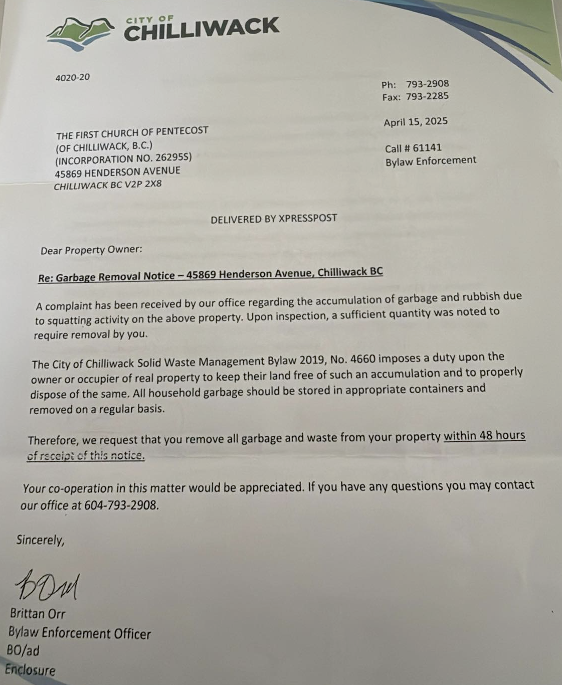 CHILLIWACK — A Chilliwack RCMP spokesperson has confirmed that police investigated arson and vandalism at a local church in July, but the church says it’s gotten little help from police or the City of Chilliwack to stop ongoing issues on their property.