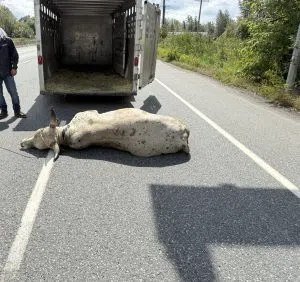 Crews successfully wrangle bull on the loose on Hwy 11 in Abbotsford