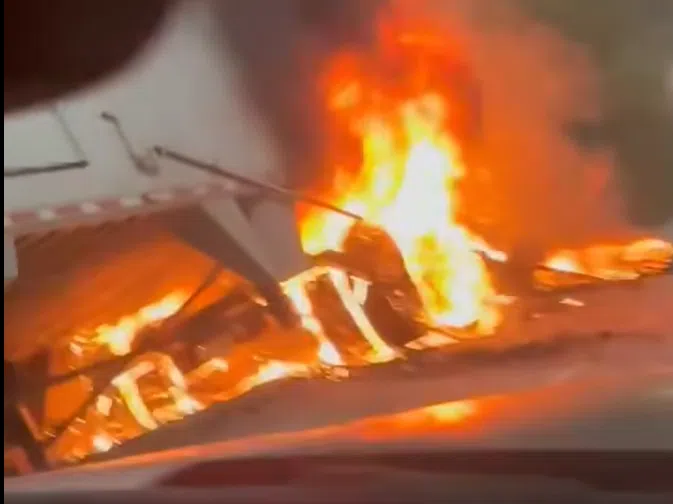 Scanner traffic reported a massive accident on the highway involving multiple vehicles and a semi-truck on fire just after 6 a.m.