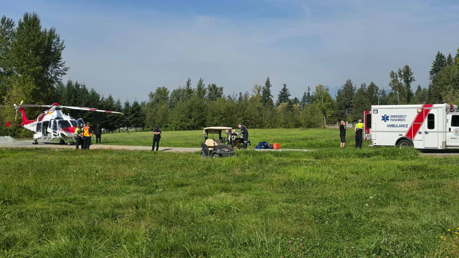 At around 12:23 p.m., Langley RCMP responded to a report of a fire in the area of the 6600 block of 272 Street. The fire department was also present, along with a BC ambulance and an airlift.