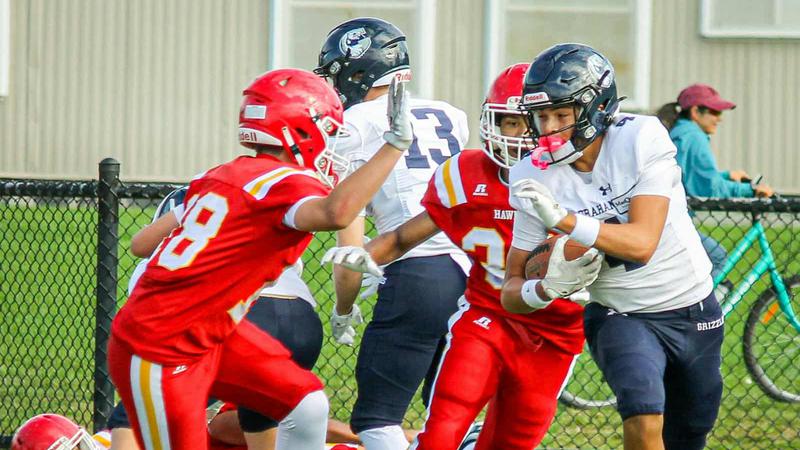 Riding high after a 4-1 preseason, the JV Grizzlies parlayed that momentum by overwhelming the JV Hawks with a balanced offensive attack and a suffocating defense that allowed less than 40 yards of total offense on the day.