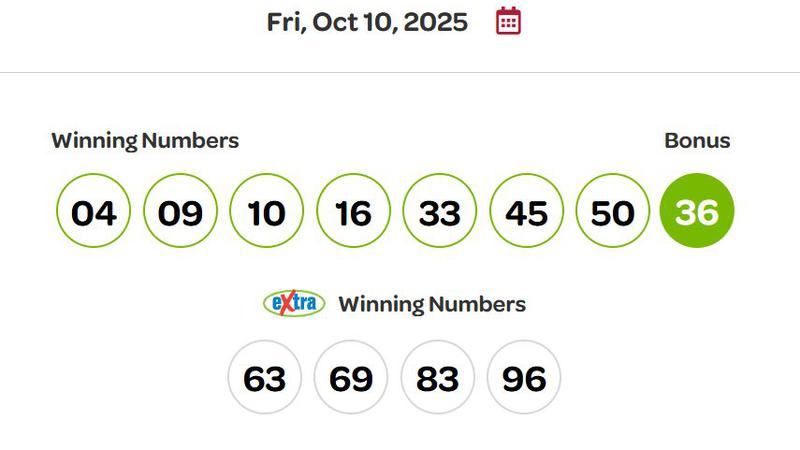Image: The unofficial winning numbers in the Lotto Max draw on October 10, 2025. / BCLC