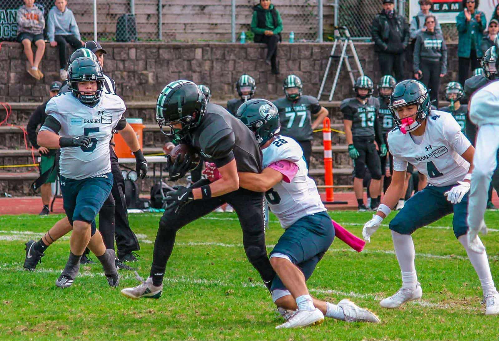 ABBOTSFORD — In what proved to be their most formidable challenge of the season thus far, the G.W. Graham JV Grizzlies parlayed a dominant ground game of over 332 yards into a nail-biting 32-29 win over Robert Bateman Thursday in Abbotsford.