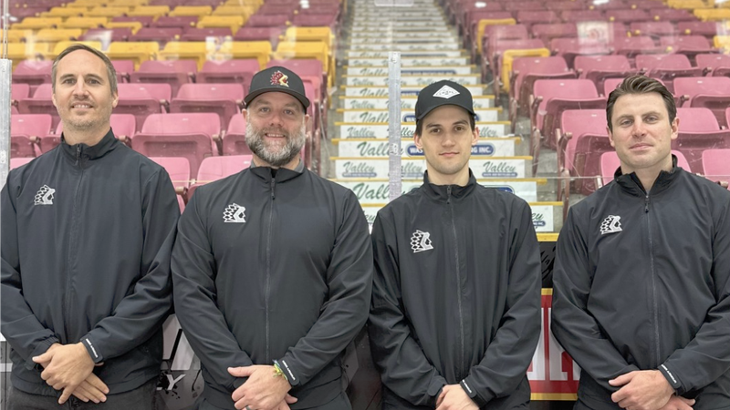 Image: Chilliwack Chiefs / The Chilliwack Chiefs coaching staff consists of (left to right) Assisant Coach Nathan Martz, Head Coach and GM Brian Maloney, Video Coach Lucas Bourdon and Assistant Coach Graeme Strukoff.