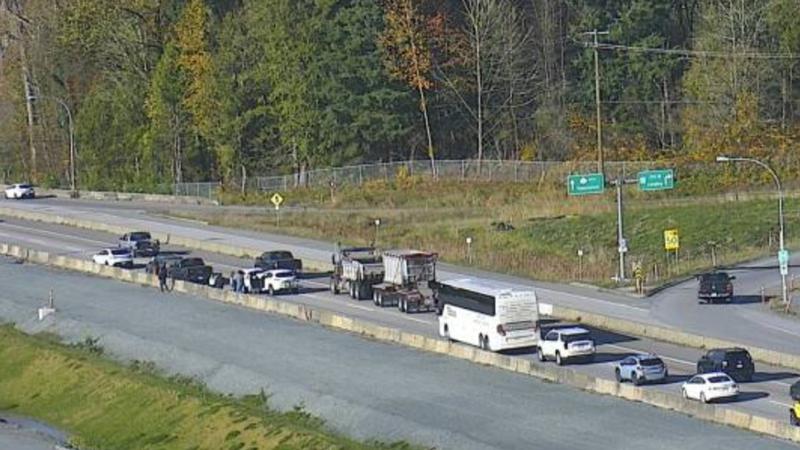 Image: DriveBC / X / A stretch of Highway 1 has been closed at 232nd Street due to a vehicle incident Saturday afternoon, November 8.