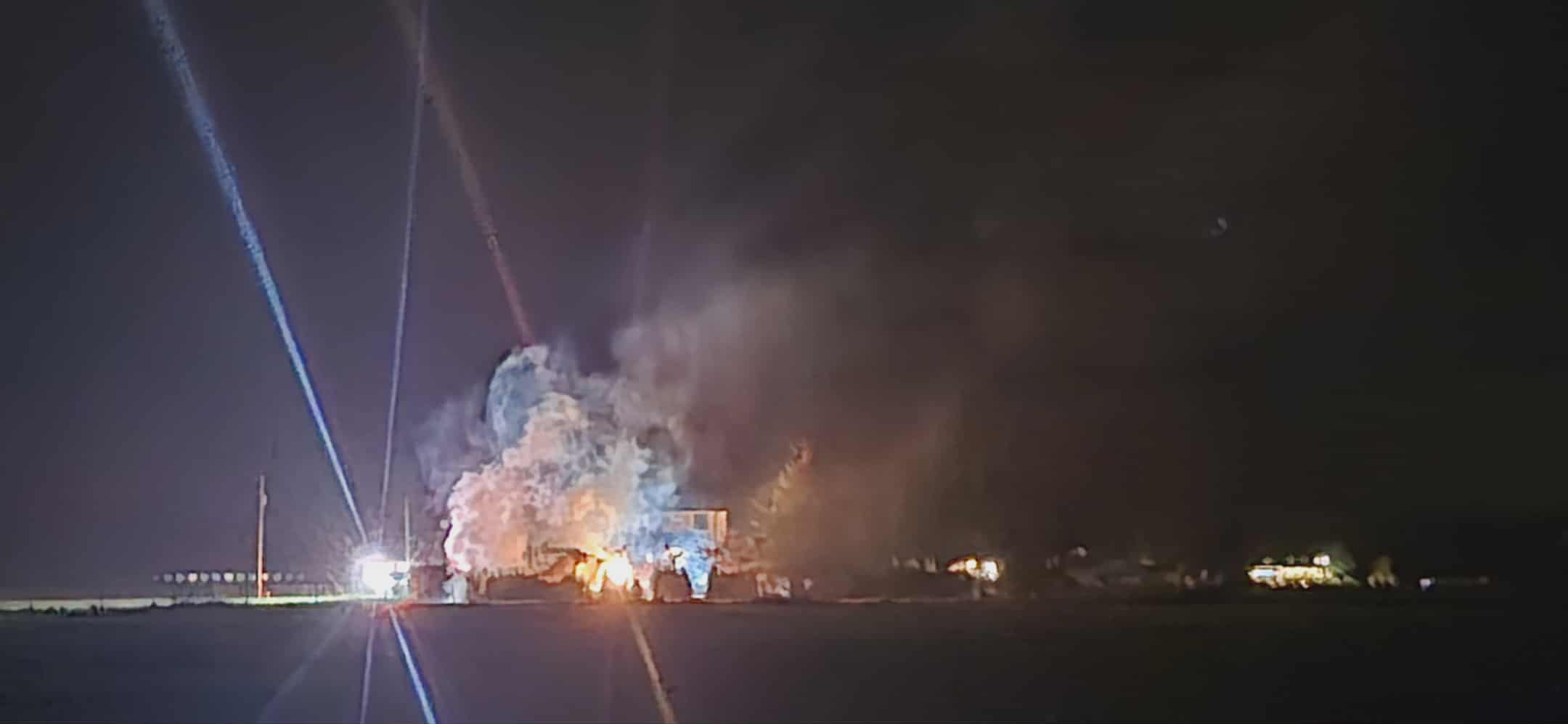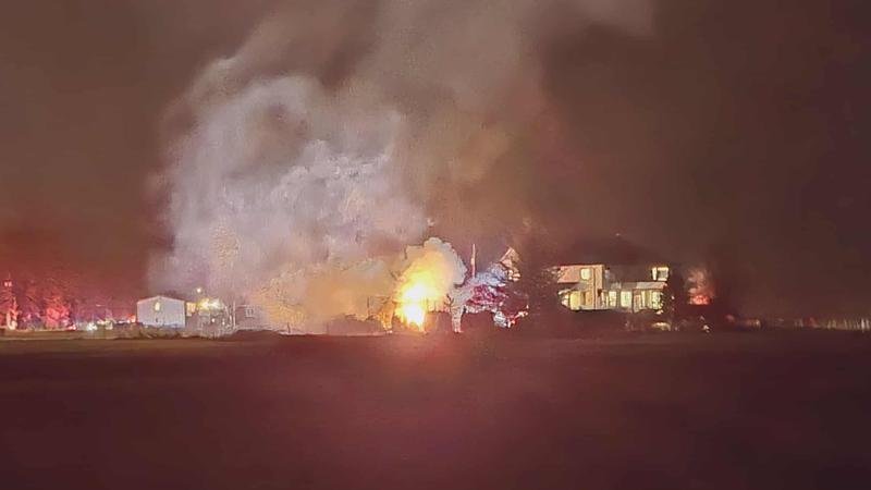 Scanner traffic reported the fire on Ottenbreit Road, near the No. 9, at around 9 p.m. Images and videos from the incident show the shop fully engulfed in flames, with tall billows of smoke emerging from the structure.