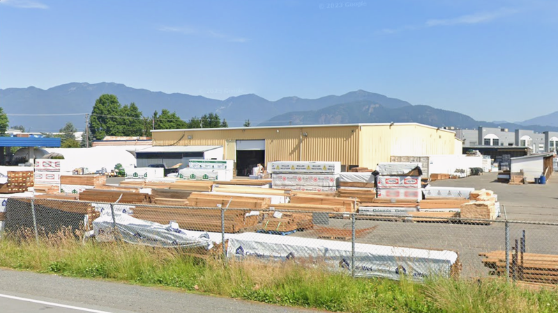 Image: Google Maps / BCEHS reported no one was hurt after a motor vehicle incident near a lumberyard in Chilliwack early Sunday morning, November 16.