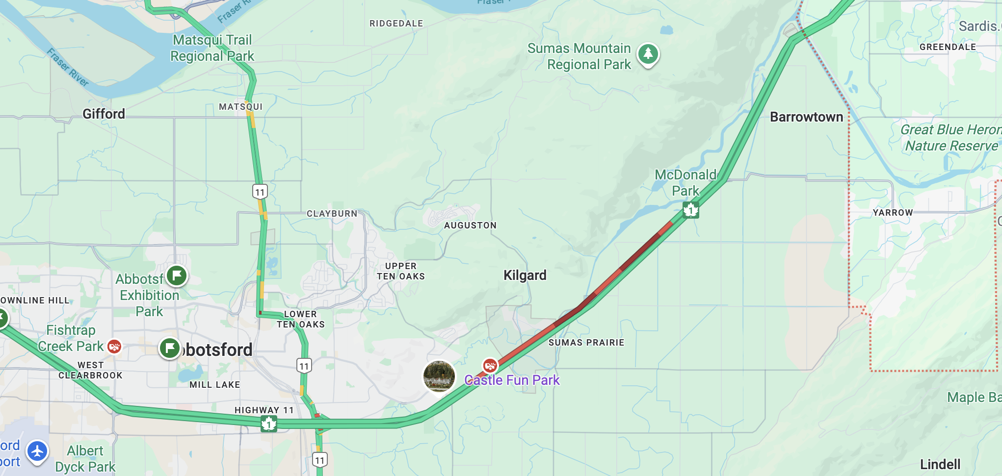 DriveBC posted in the past half hour that a tractor-trailer in the centre median ditch has impacted motorists traveling between Chilliwack and Abbotsford.