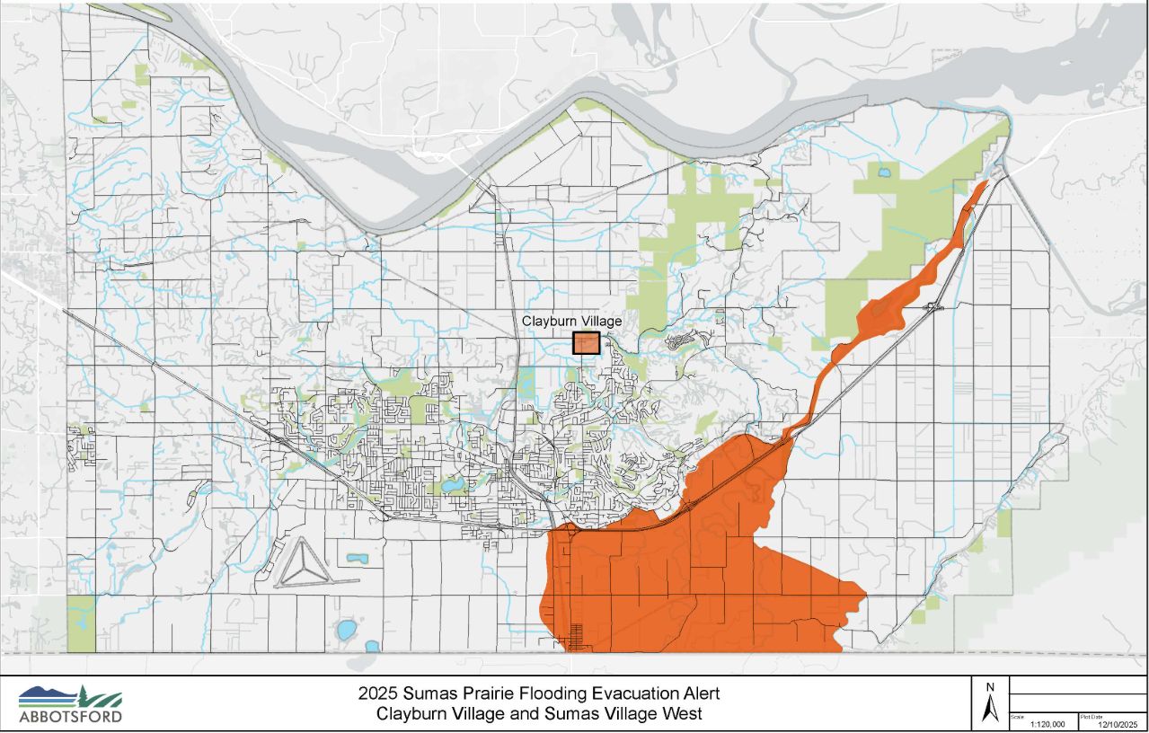 ABBOTSFORD — A large area of Abbotsford has been placed under an Evacuation Alert by the City of Abbotsford. The affected areas include properties in Sumas Prairie West and Clayburn Village.