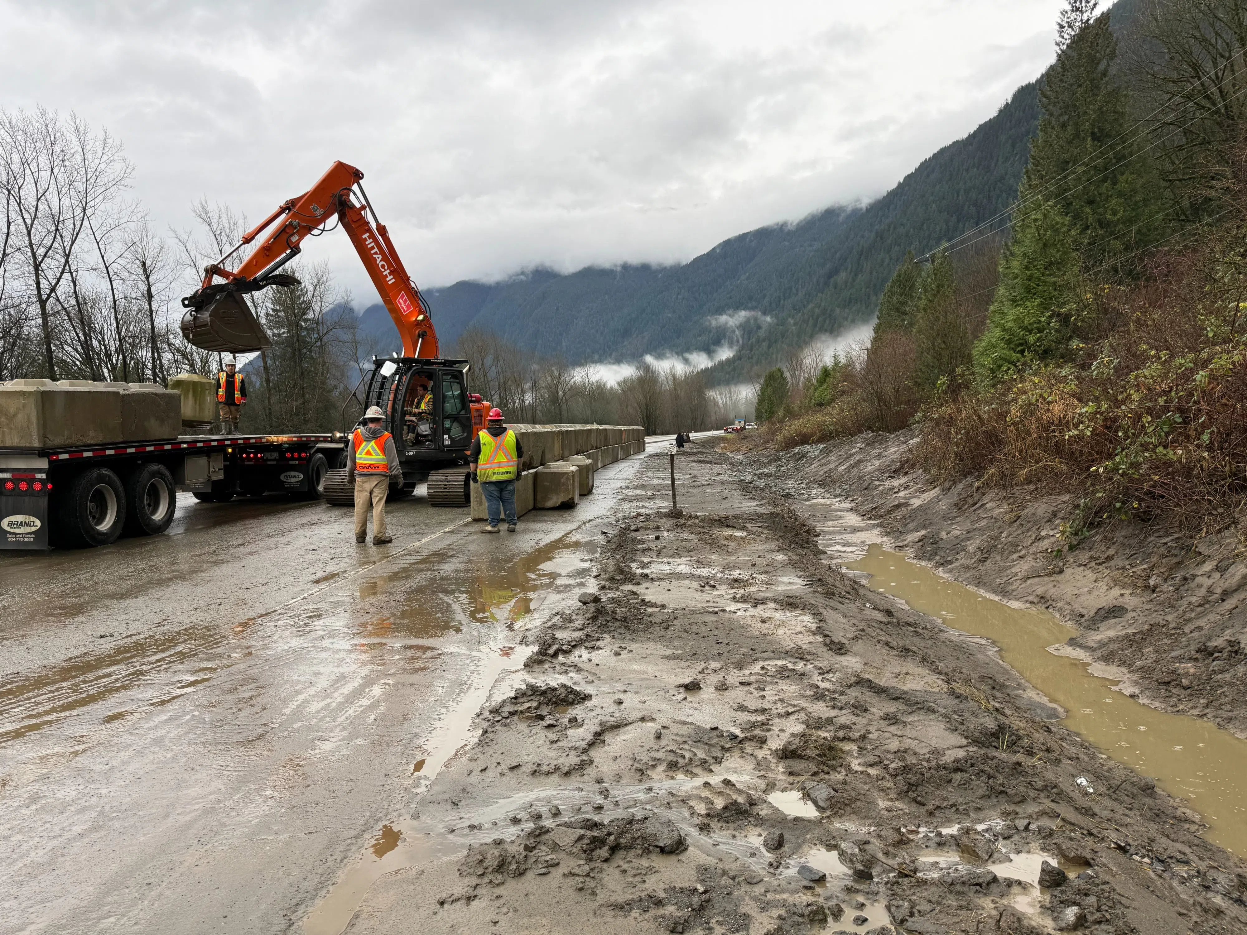 Crews working to protect Hwy 1 eastbound at Herrling Island. / DriveBC / X