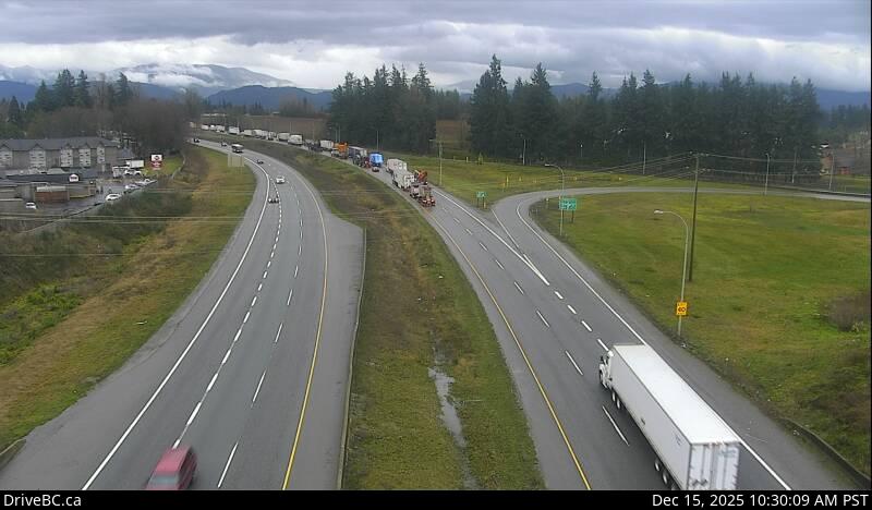 According to two DriveBC cameras at both Clearbrook Road (exit 87) and Sumas Way (exit 92), traffic is heavily backed up for eastbound commuters.