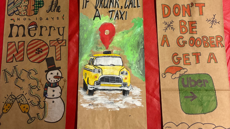 Image: AbbyPD / Provided / More than 1,300 liquor paper bags have been designed by Abbotsford students for a new impaired driving initiative.