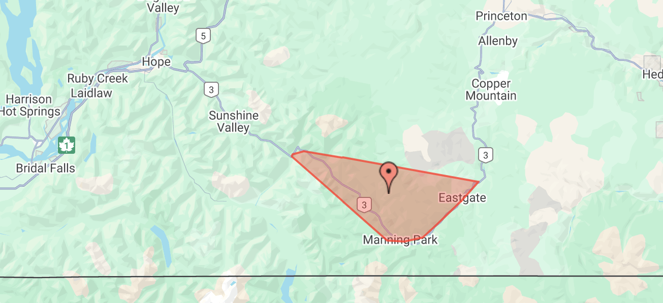 The affected area is southeast of Sunshine Valley stretching to parts of Manning Park and into the small community of Eastgate, if BC Hydro’s outage map is indeed correct.