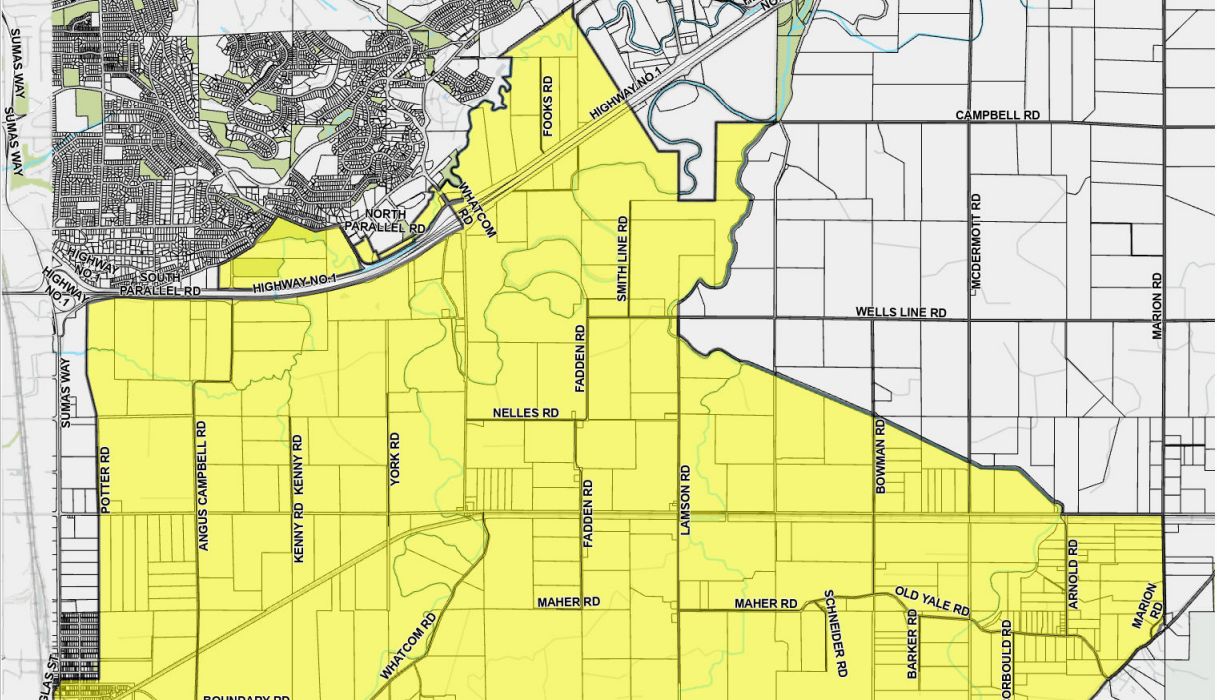 Image: The City of Abbotsford will conduct curbside pick-up on January 3, 2026 for properties in Evacuation Zone areas of the city. The Evacuation Order zone is identified in yellow. / City of Abbotsford map