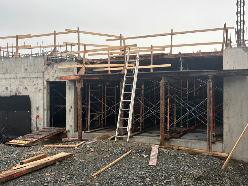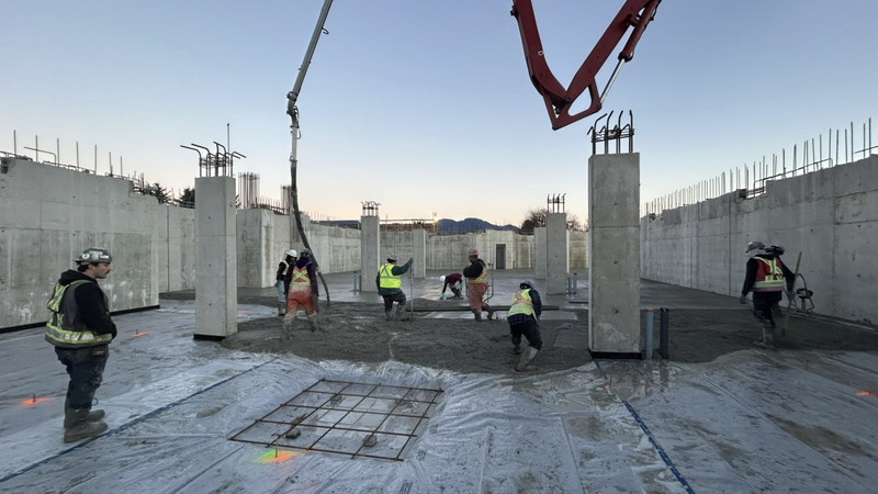 The Chilliwack School District reported last week on social media that contractors recently poured the concrete slab for the under-building parking and are moving ahead with first-floor construction.