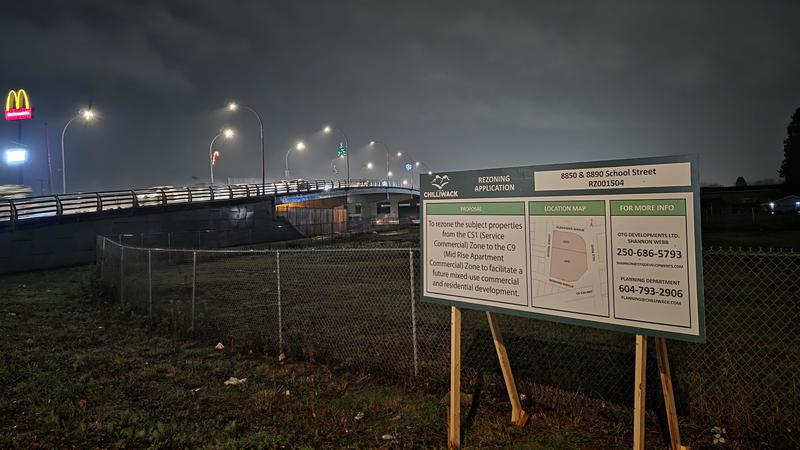 According to item 7.2 on this Tuesday’s meeting agenda, councillors are set to give first, second and third reading to a proposal by OTG Developments Ltd. to rezone 8850 and 8890 School Street from a CS1 (service commercial zone) to a C9 (mid-rise apartment commercial) zone to facilitate a future mixed-use commercial and residential development.