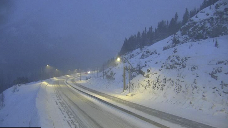 Environment Canada says weather in the mountains can change suddenly resulting in hazardous driving conditions. Naturally, motorists should adjust to winter driving conditions and use winter tires and chains.