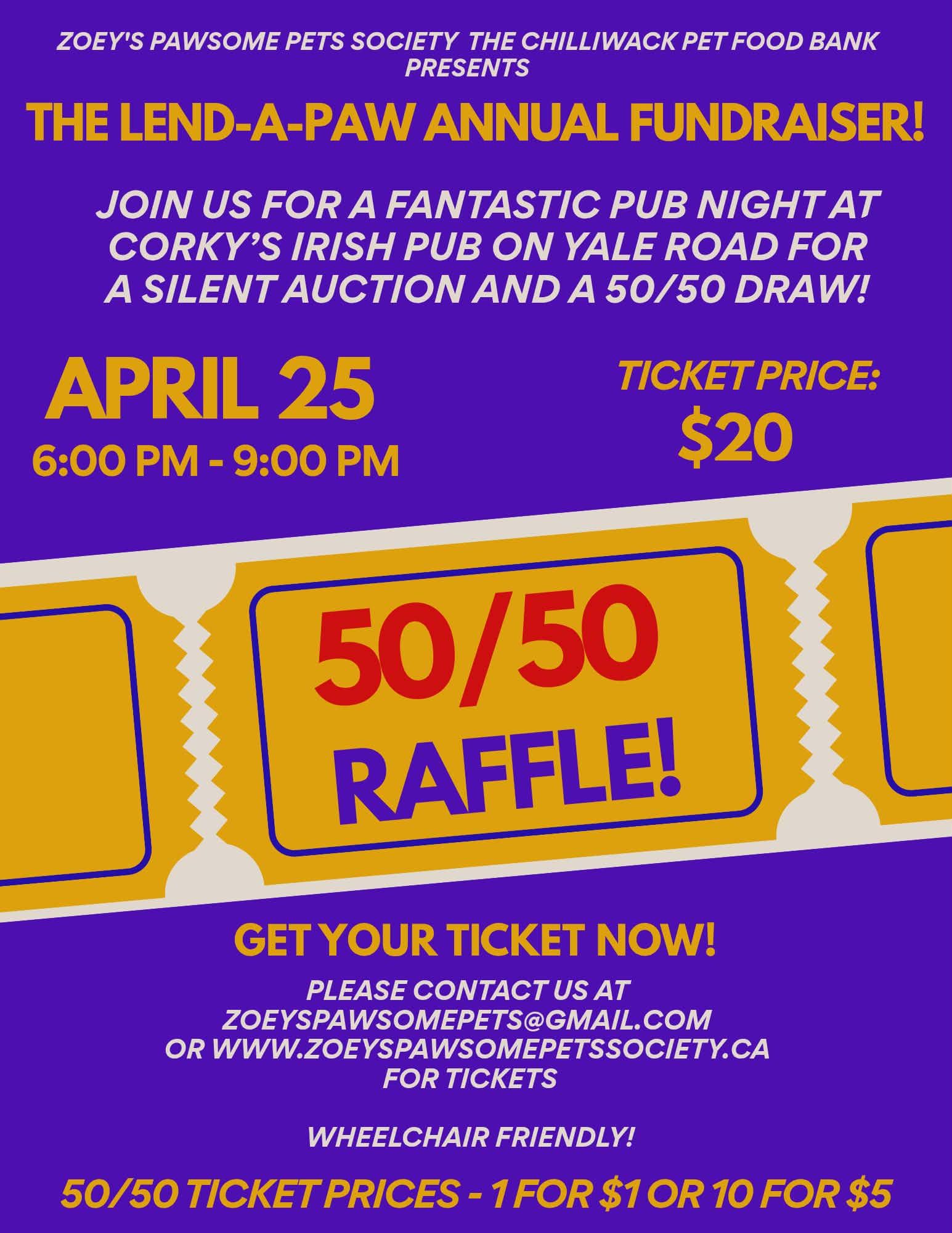 To keep that momentum going this year, they’re planning for their very first Pub Night, “The Lend-A-Paw” annual fundraiser, happening Saturday, April 25 from 6 p.m. to 9 p.m. at Corky’s Pub (3-45844 Yale Road) in Chilliwack. Tickets are just $20.