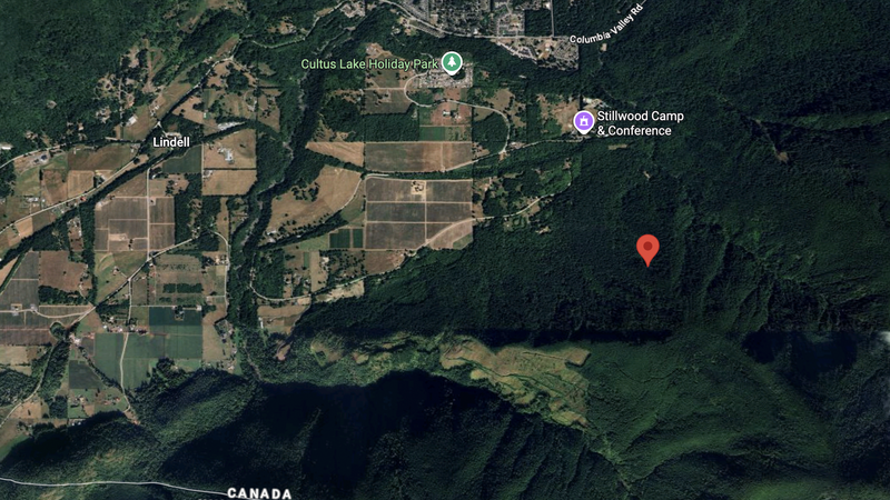 Image: Google Maps / The red pin indicates the location of a proposed holiday resort south of Chilliwack.
