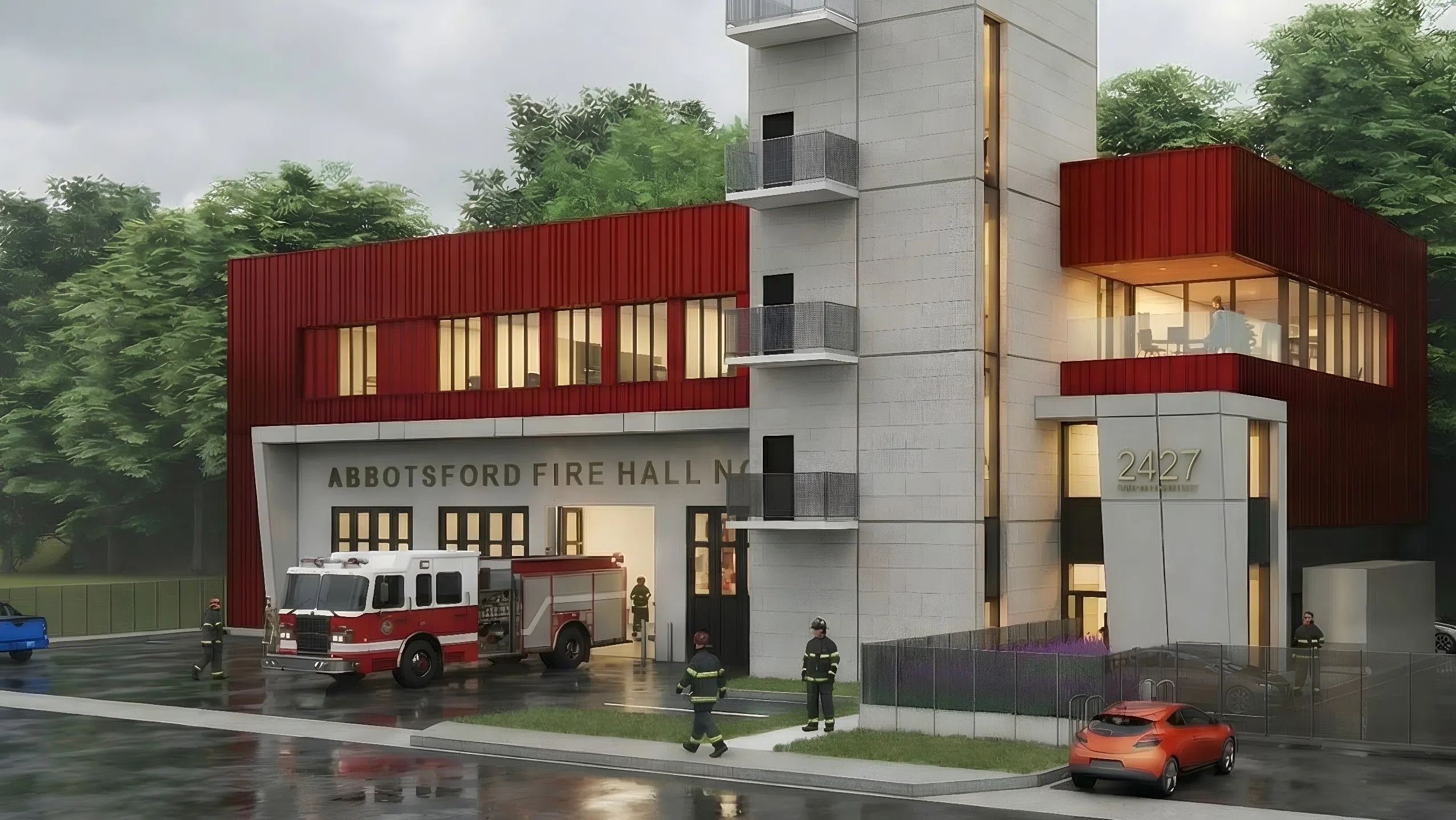 Rendering of new fire hall in Abbotsford. (Image Credit: City of Abbotsford.)