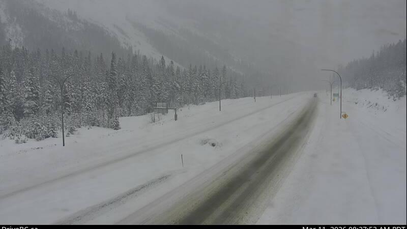 It says a low pressure system crossing the southwest interior tonight will bring another round of heavy flurries and strong winds to the Coquihalla Highway. Snow will intensify once again this afternoon as the low approaches the highway.