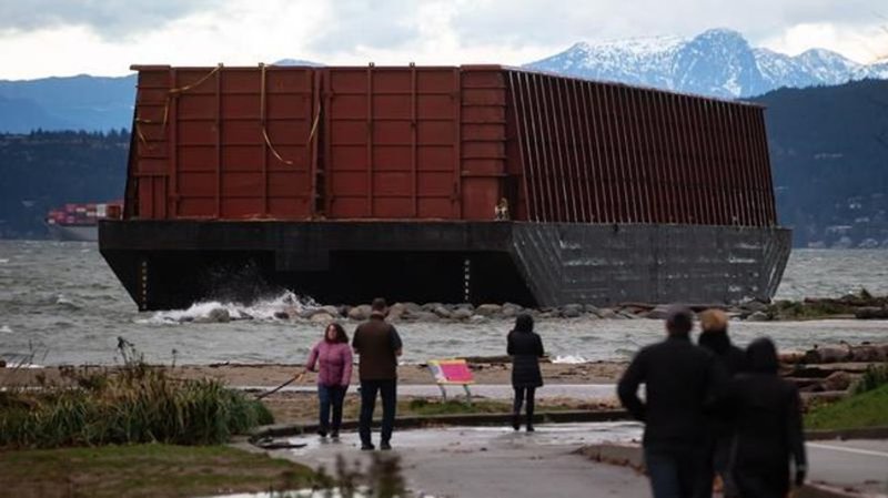 Salvage work begins to remove barge stuck for months on Vancouver beach