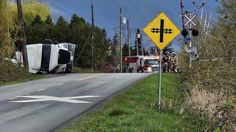 CHILLIWACK - A truck carrying live chickens crashed into a ditch on Upper Prairie Road Tuesday morning (Apr. 9), resulting in power lines to fall onto the truck and the nearby train tracks. According ...