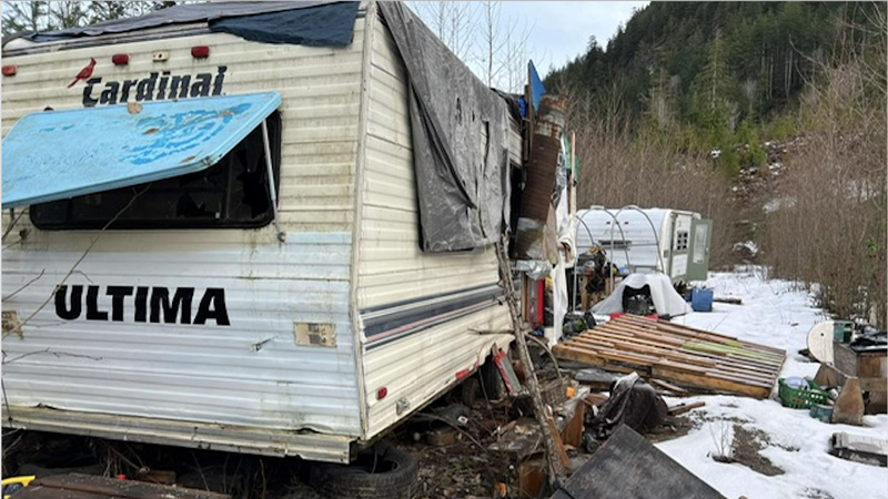 Unsightly homeless encampment documented near Borden Creek east of Chilliwack