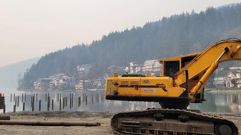 Dock restoration work at Cultus Lake Main Beach going on one month now