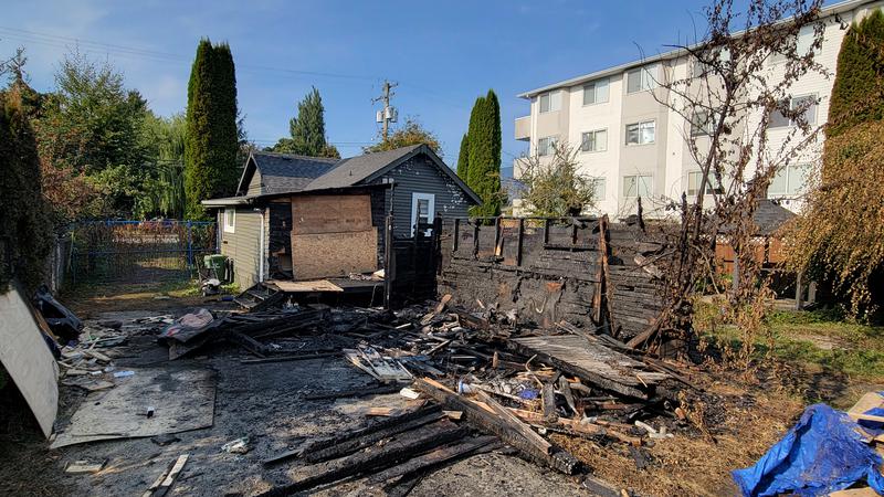Detached garage burns near downtown Chilliwack in 9500 block of Robson Street; house suffers minor damage