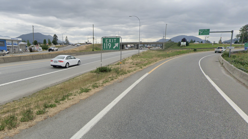 Truck hits barricade on Hwy. 1/Vedder Road off-ramp in Chilliwack Wednesday morning