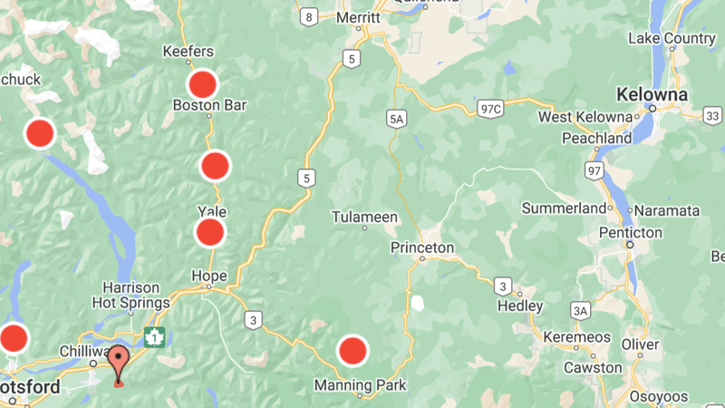 Update: Highway 1 has now fully reopened between Spuzzum and Boston Bar, north of Hope: Drive BC