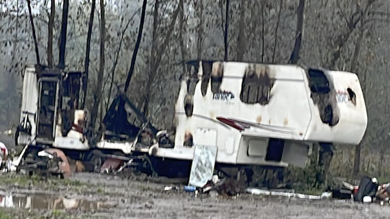 Single-room residential structure, RV go up in flames Tuesday night in Hope