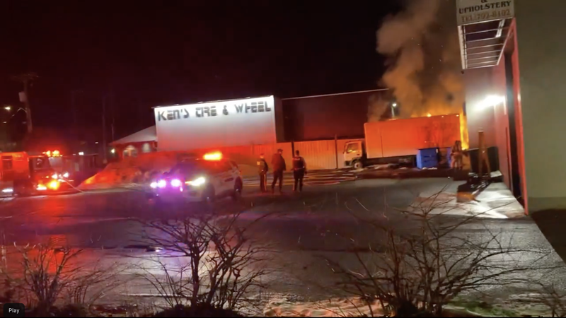 Chilliwack RCMP, firefighters respond to fire near Ken's Tire and Wheel Wednesday night